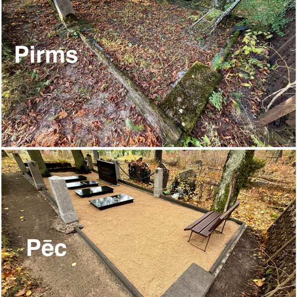 Fotokolāžās redzams pirms un pēc iekārtošanas kopskats